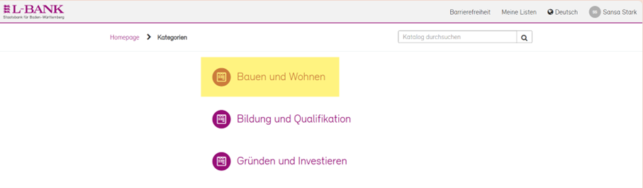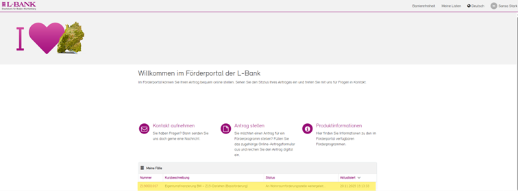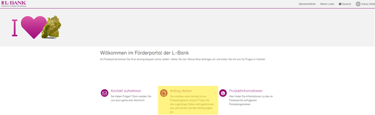 Um zur Startseite zurückzukehren, klicken Sie auf das L-Bank-Logo oben links.