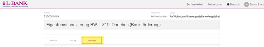 Im Bereich „Anhänge“ sehen Sie die Dateien, die Sie hochgeladen haben. Dort finden Sie auch die PDF-Zusammenfassung Ihres Antrags.