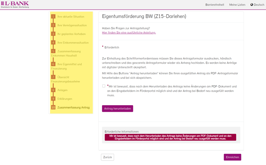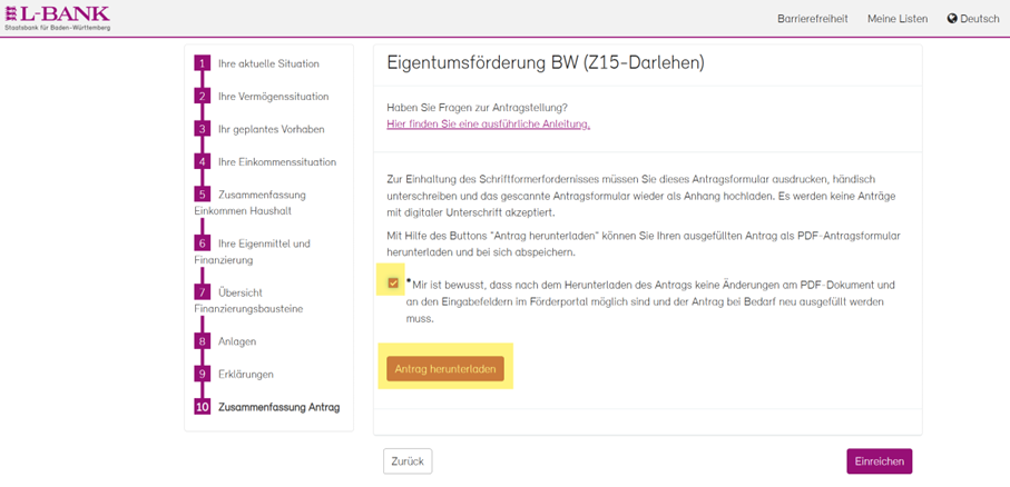 Bitte beachten Sie: Nach dem Herunterladen des PDF-Dokumentes können Sie Ihre Angaben im Antragsformular nicht mehr ändern. Bei Bedarf muss der Antrag neu ausgefüllt werden.