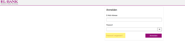 Klicken Sie in der Anmeldemaske auf „Passwort vergessen?“, um diesen Prozess zu starten. Dieser Prozess besteht aus drei Schritten.