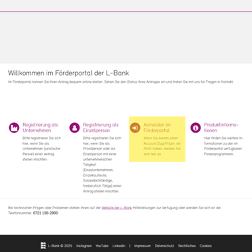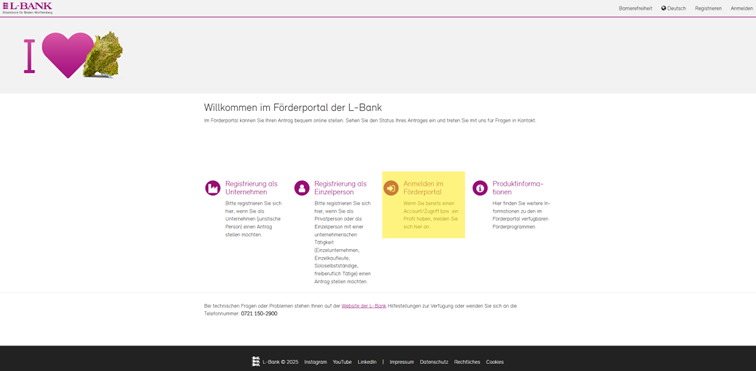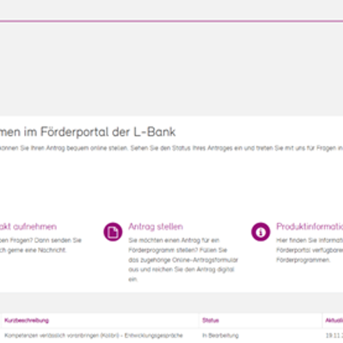 Jetzt können Sie die Funktionen des Förderportals nutzen